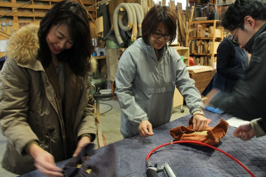 2017.11.23 CATEGORY: スタッフ通信 鳴海です。 「スツールを作ろう会」本日開催致しました。 皆様、真剣な表情で楽しそうに作業して頂きました!! スタッフ酒井の説明を真剣に聞いています 木部研磨 紙やすりでゴシゴシ研磨します。 皆様、黙々と集中して作業なさってました。 木部塗装 オイル塗装でパッと色が変わり、木目が活きてきます。 お客様も嬉しそうです♪ 座面張り いよいよ、座面張りです! それぞれお選び頂いた布を、機械をつかって留めます。 社長もちらっと様子見に・・・ とても様になってますね まるで、職人の様です! 座面と木部をつなげて完成です 三名共、違ったお色をお選びいただきました。 どれも上手にできています!! 最期に記念撮影! 皆いい笑顔です☺ お客様にも「愛着湧きます~」「可愛い~」とお喜びいただきました。 ありがとうございました。
