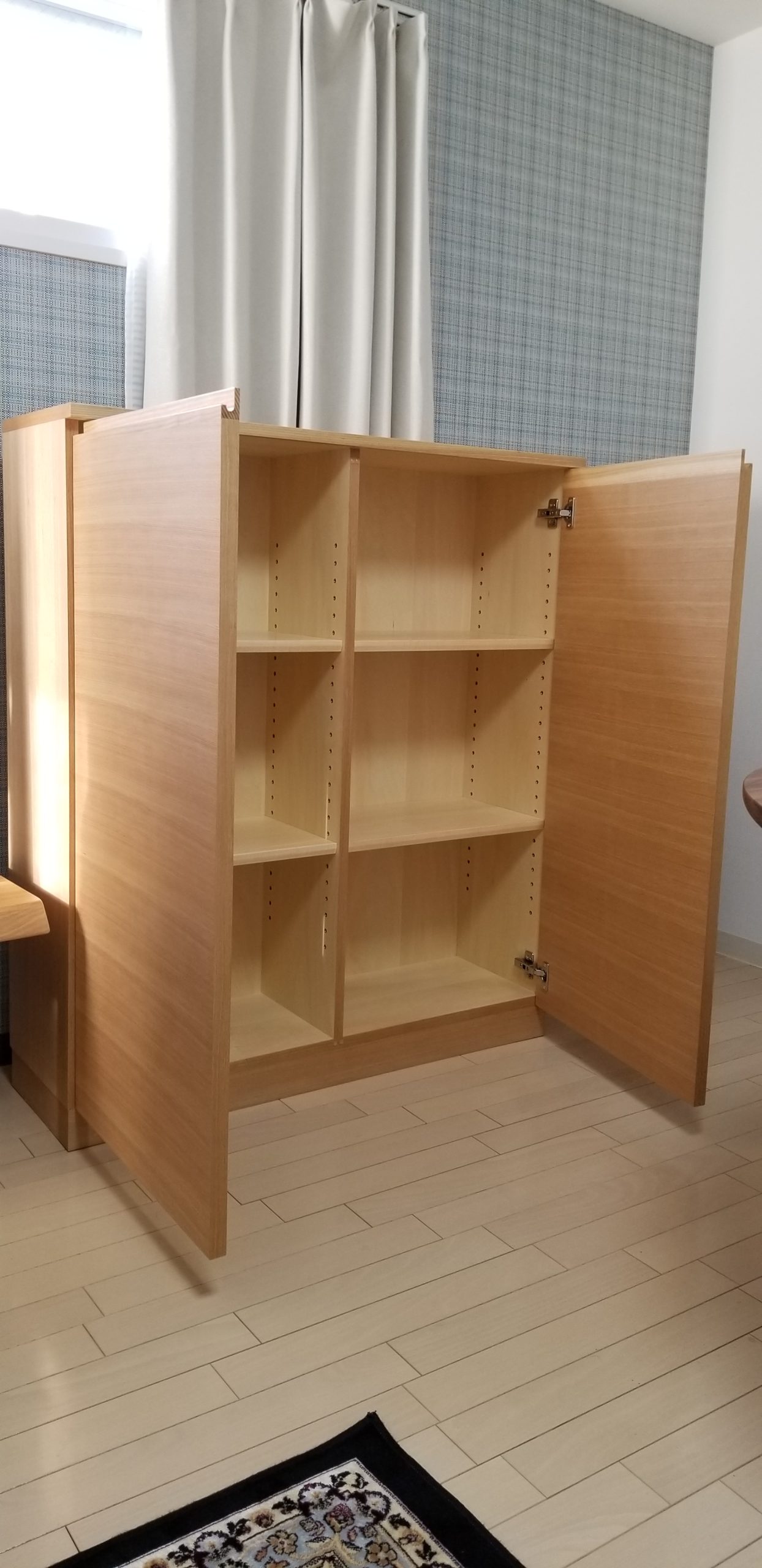 2024.8.6 CATEGORY: 納品事例 こんにちは。クローゼットの納品事例をご紹介いたします。設置したのはマンションのリビングと寝室です。 お手持ちのソファに合わせた優しいウォームグレーのお色で塗装しました。樹種はセンです。 引き出しには海外旅行で集めたショットグラスなどを収納予定です。 原型デザインはボントレーチェスト ボントレーチェスト 次にご紹介するのは寝室の収納、バッグや季節物のお洋服を収納されます。 正面とサイドの2方向で収納できるが特徴です。 最後に寝室クローゼットの壁面収納をご紹介いたします。真っ白塗装で収納力抜群です。 設計上のポイントとしては、暖房とエアコンをかわしつつ、将来に備えたメンテナンスが出来ること。 更に見た目はスッキリとさせることを重視しました。 暖房スペースもこのように扉を開くとちゃんとフィルター交換ができるスペースを確保しています。 エアコンのダクトも目隠ししつつ、将来のエアコン交換に備えて箱ごと取り外せる仕様でお作りしました。 このようにすでにあるお部屋の条件に合わせてお話を伺いながら、じっくりとお作りできるのがオーダー家具のメリットです。